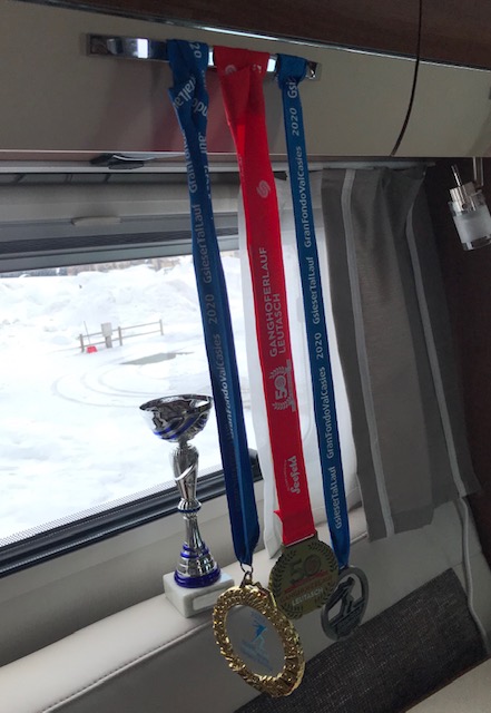 Kisat oli taas menestys, Jussi voitti oman sarjansa ja ilmassa oli suurta urheilujuhlan tuntua. Illalla kilisteltiin naapuriauton pariskunnan kanssa eikä jääty harmittelemaan mm-kisojen peruuntumista. Vaikka matka siis sai ei-toivotun käänteen niin kisafiilistä ei ole puuttunut ja iloinen mitaleiden kilinä kuuluu auton asunto-osasta vuoristoteitä ajellessa.