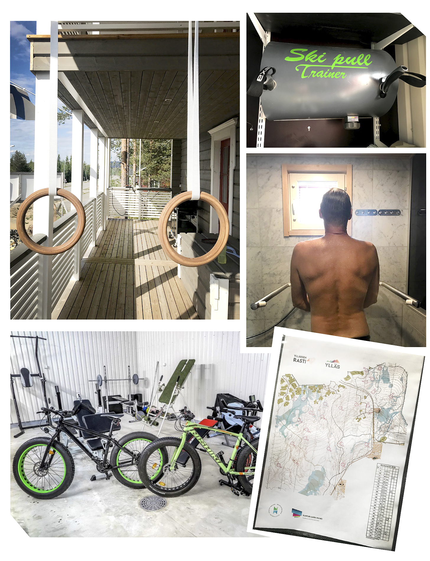 Roikuin Villa Jussin terassille vasta-asennetuissa renkaissa ja ohipyöräilleen perheen lapsen iloinen huuhahdus sai huomaamaan, että tosiaan - harvassa vuokramökissä taitaa jumpparenkaita olla - puhumattakaan tästä koko sporttivarustuksesta mikä meillä on.